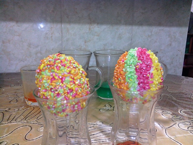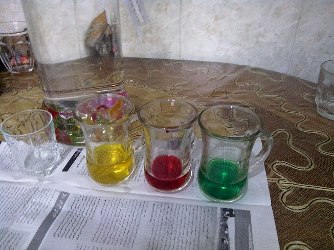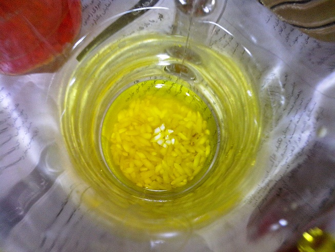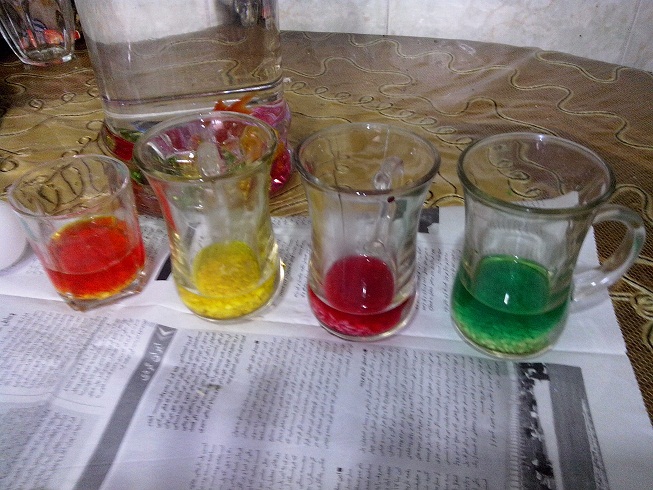 خب حالا دست به کار می شویم برنج را به میزان نیاز برداشته و در رنگ ها می ریزیم و حدود 20-30 دقیقه نگه می داریم تا رنگ ها حسابی به خورد برنج برود و برنج رنگ بگیرد.